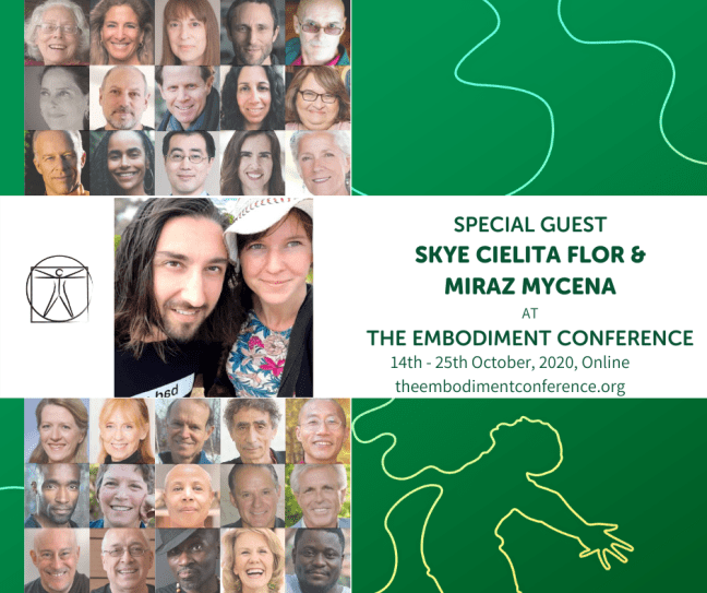 We are delighted to be part of The Embodiment Conference. It will be a rich opportunity to come home to your body, in our chaotic world. Many of the planetโs best teachers will be there, and it costs nothing to be a part of. Itโs free to all, online, and boasts keynote speakers such as Charles Eisenstein, Philip Shepherd, Judith Blackstone, David Abram, Bayo Akamolofe and many more.